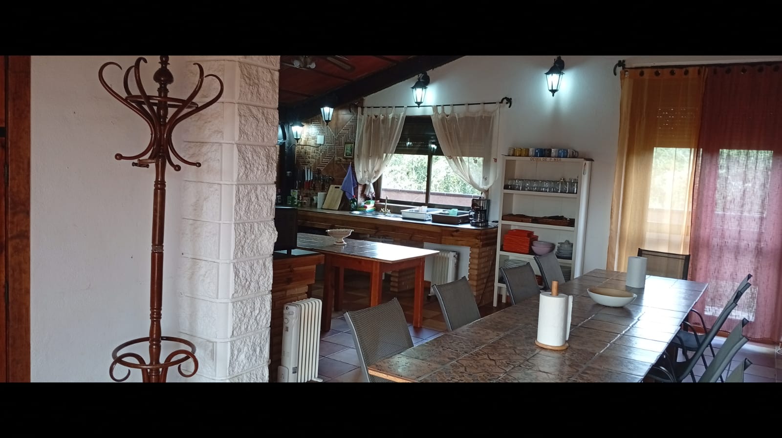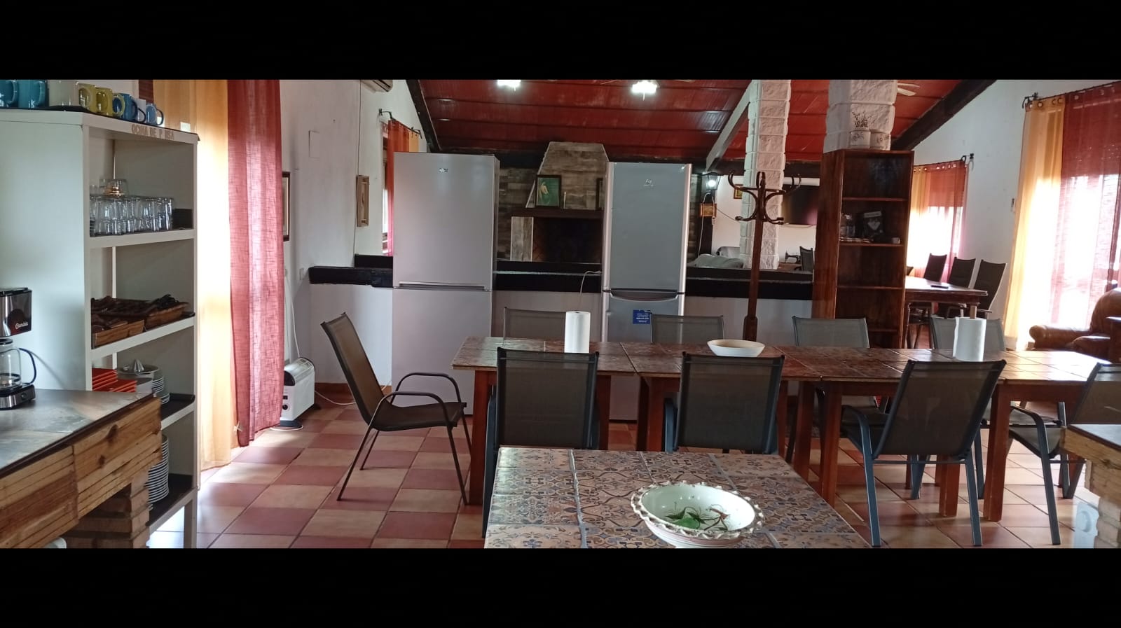 Casa Andalucía es la casa más grande, (cuenta con 12-15 plazas de sofá junto a la chimenea y 5 mesitas auxiliares x 2= 10 plazas). Las plazas que caben en la cocina son; 16 plazas. Más las que caben en el salón-chimenea, frente al televisor; 10 plazas. En total hay 36 plazas en mesas.