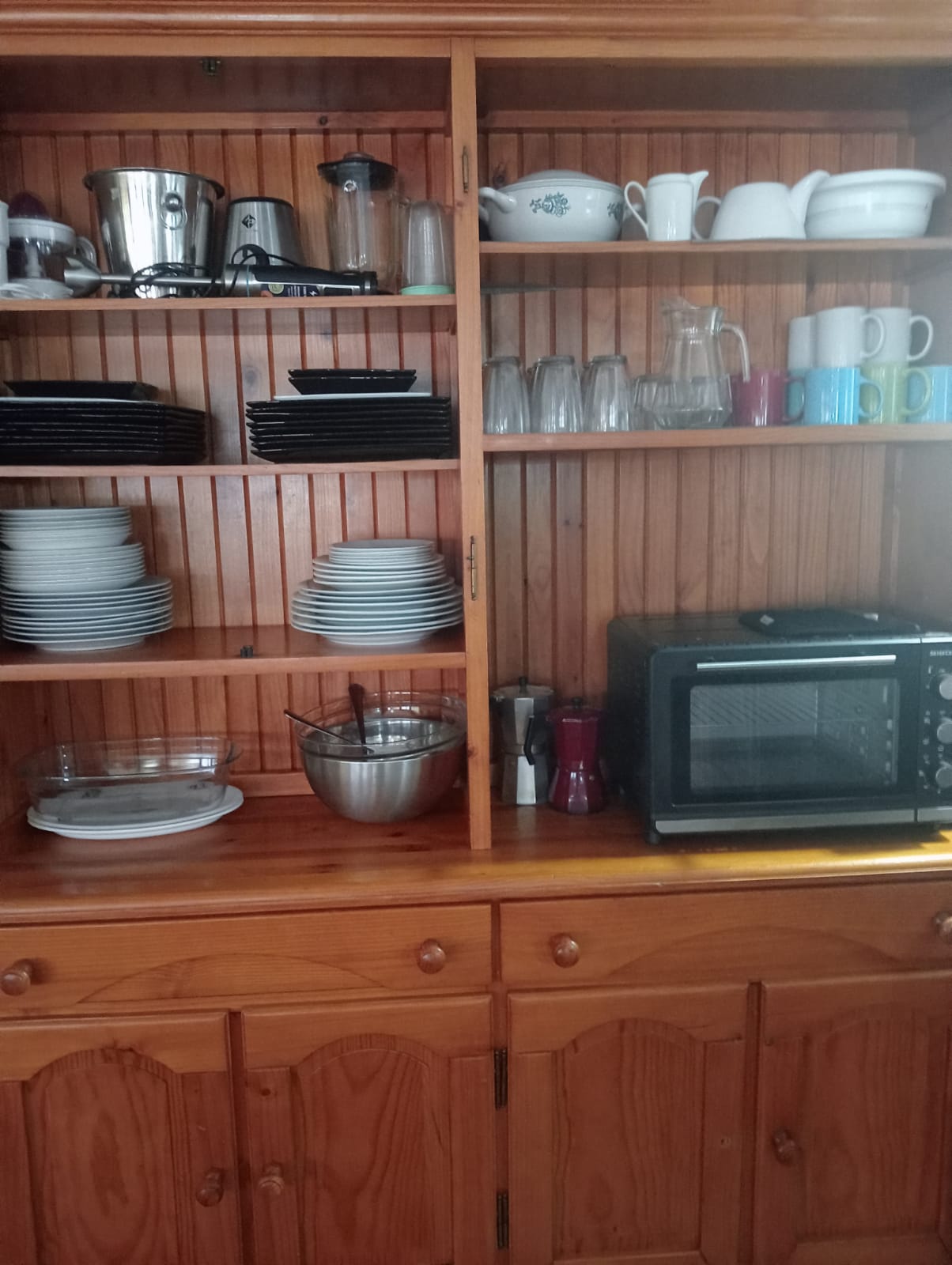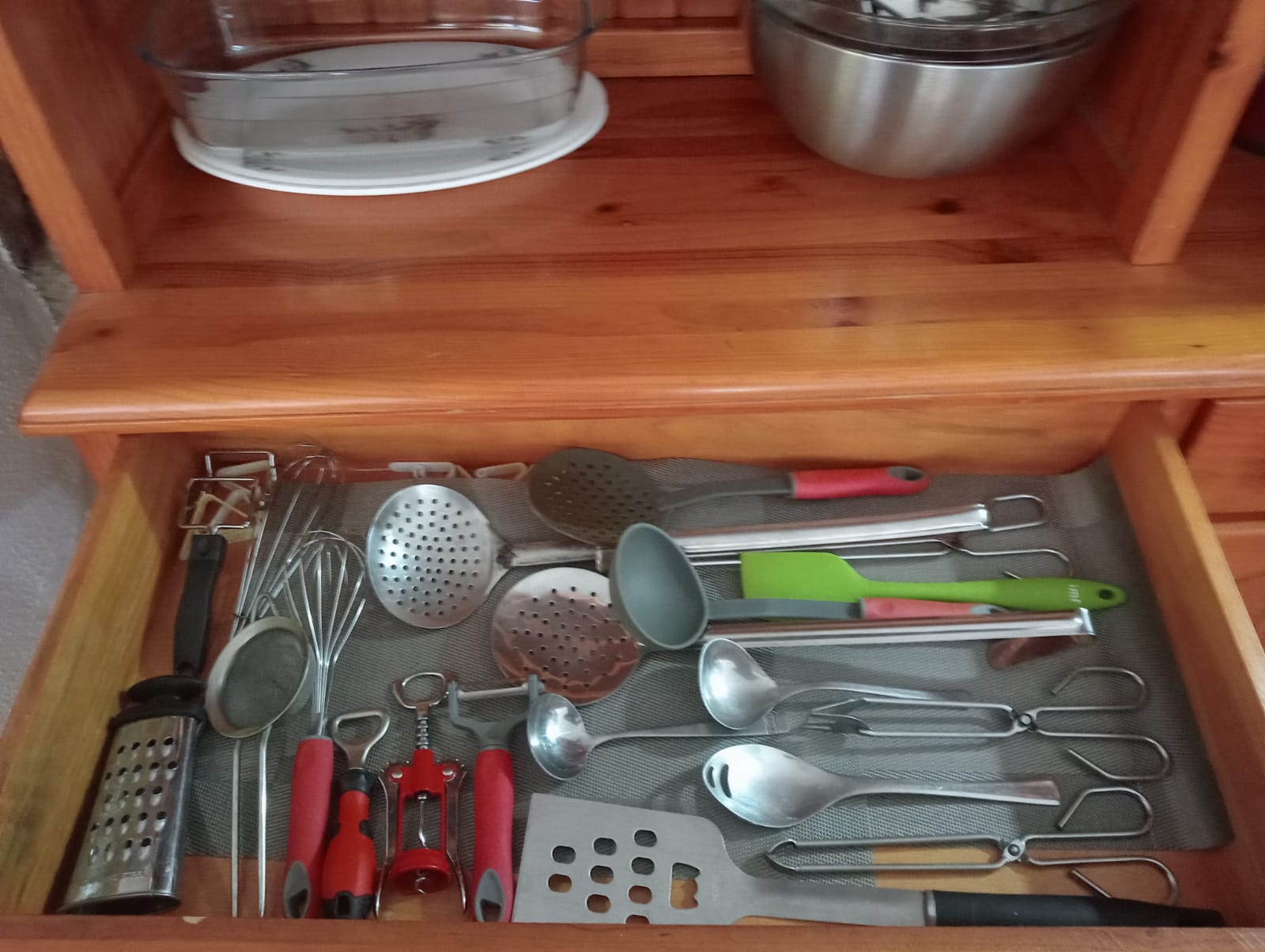 Calentador eléctrico de agua, 1 plancha de ropa, 1 secador pelo 1 pinza eléctrica de pelo, 1 batidora, cafetera tradicional, 6 diferentes fuentes ovaladas y redondas,1 tostador de pan, 1 plancha eléctrica de cocina, 1 horno eléctrico, 1 microondas, amplia gama en cuchillos cocina, y cubertería, vasos, tazas, platos normales, y 16 platos cuadrados muy amplios de diseño. Infusiones y aliños cocina. un termo eléctrico, 3 paelleras 8 a 12 servicios cada, cocina de inducción, 2 frigoríficos, uno americano dos puertas, nos facilita hielo varios formatos y agua fría, batidora , exprimidor eléctrico. Horno eléctrico, microondas, cafetera eléctrica y tradicional, batidora, pizzera eléctrica, jamonero, rosco de cocinar y bombona etc.